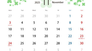 2025年11月 四つ葉のクローバーカレンダー A4横型 月曜始まり