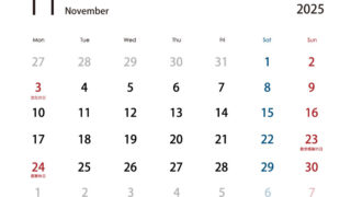2025年11月 シンプルカレンダー A4横型 月曜はじまり