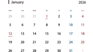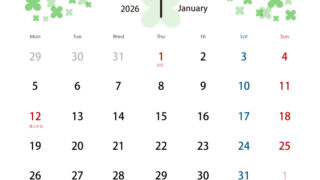 カレンダー 2026年1月 四つ葉のクローバーカレンダー A4横型 月曜始まり